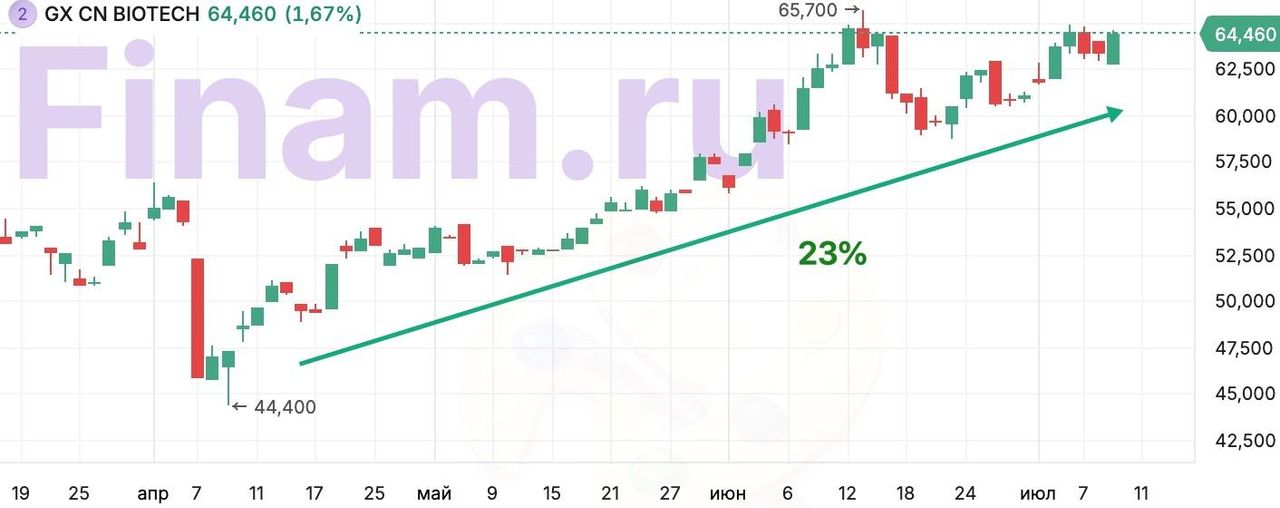 С момента публикации нашей инвестиционной идеи по биотехнологическому ETF с привязкой к Китаю в апреле инструмент показал хороший отскок с доходностью в размере 23%, после чего 1 июля мы скорректировали рейтинг бумаги до «Держать». Реалии политики администрации Трампа в области фармацевтики и биотеха заставили инвесторов обеспокоиться по поводу дальнейшего развития отрасли, тогда как для китайского биотеха сложился довольно благоприятный информационный фон, стали звучать мнения, что китайский биотех способен оспорить превосходство американского за счет своих семимильных темпов развития. На таком фоне Global X China Biotech ETF сумел показать динамичный рост за короткий промежуток времени. На данном этапе позитивные новости и мнения практически заложены в стоимость бумаги, а для нового витка роста потребуются осязаемые изменения в политике КНР в сфере здравоохранения, о которых пока говорить преждевременно — китайские власти по-прежнему держат отрасль в «ежовых» рукавицах. Рейтинг бумаги «Держать», целевая цена 64,9 HKD, апсайд близок к нулю.