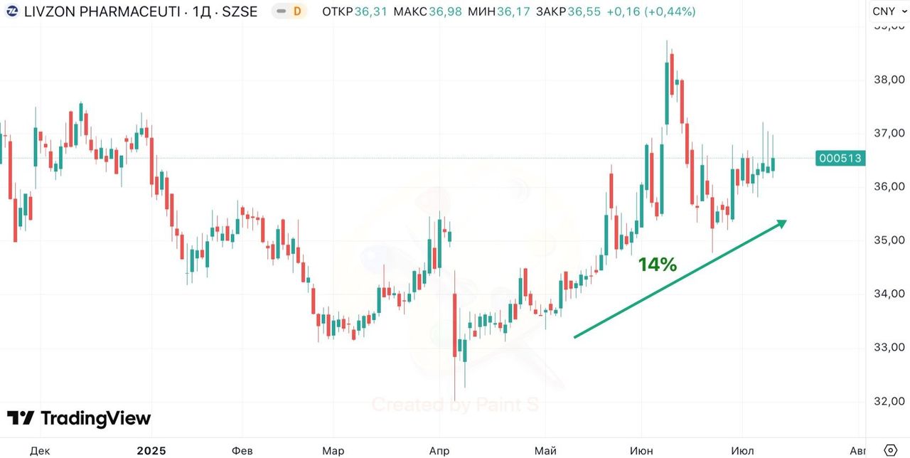 За период с публикации в мае нашей инвестиционной идеи по акциям китайской фармкомпании Livzon Pharmaceutical бумага принесла доходность в размере 14%, за 50 дней. Livzon Pharmaceutical — один из ведущих производителей разнообразной фармацевтической продукции в Китае. Речь идет о фармкомпании полного цикла, осуществляющей исследования, производство и продажу лекарственных препаратов. За последние годы Livzon Pharmaceutical наметила для себя траекторию выхода на быстрорастущий рынок терапии ожирения и диабета. Livzon Pharmaceutical — в числе первых китайских разработчиков дженериковой версии знаменитого семаглутида, компания уже завершила испытания третьей фазы по диабету 2-го типа и подала заявку на получение разрешения на коммерциализацию семаглутида по данному показанию. Акции Livzon Pharmaceutical сохраняют рейтинг «Покупать», целевая цена 42,8 CNY, апсайд 17%.