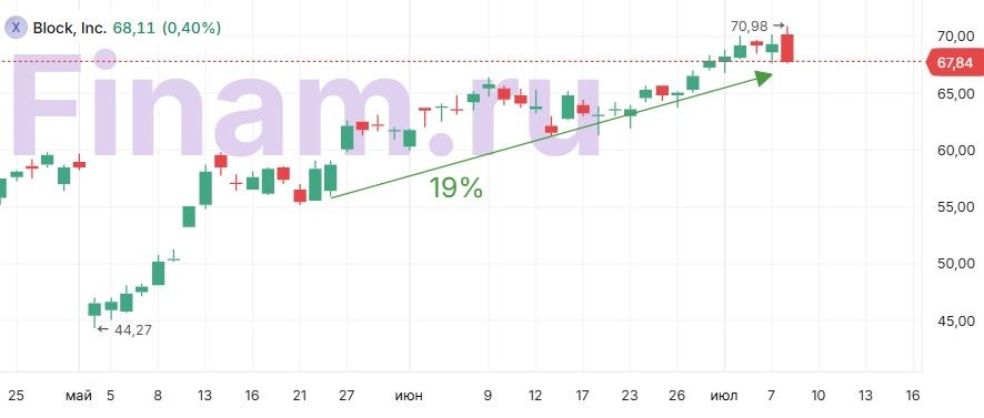 Мы понизили целевую цену по акциям Block $66,02 в связи с возросшей неопределённостью в тарифной войне между США и другими странами, так как бизнес компании сильно зависит от экономической активности малого и среднего бизнеса. Тем не менее после снижения целевой цены остался немалый апсайд, который был устранён на фоне паузы в тарифной войне. Итоговая прибыль идеи составила более 19% за 46 дней. В данный момент акции находятся на пересмотре.