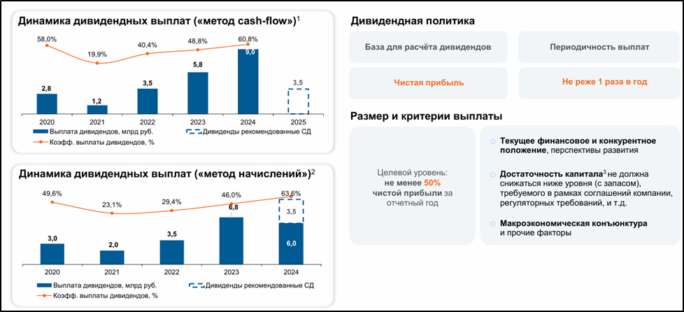 Дивидендная политика подразумевает целевой уровень выплат не менее 50% от ЧП по МСФО.