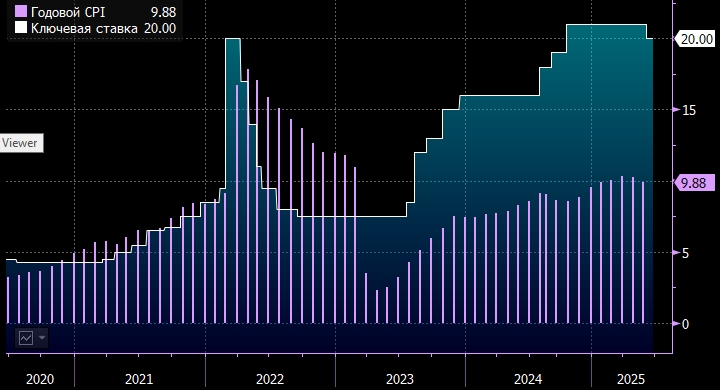 В июне Совет директоров Банка России принял решение снизить ключевую ставку на 100 базисных пунктов, до 20% годовых. Следующее заседание ЦБ состоится 25 июля.