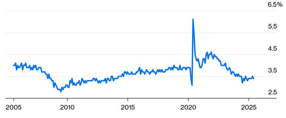 Что касается рынка труда, экономика остаётся близкой к прогнозам чиновников ФРС о полной занятости, при этом уровень безработицы колебался в узком диапазоне от 4% до 4,2% за последние 12 месяцев. Хотя рост занятости по заработной плате замедлился, а уровень найма снизился, это было компенсировано замедлением роста рабочей силы, вызванным, в основном, борьбой с нелегальной иммиграцией и ростом депортаций, а также тем, что увольнения остаются незначительными.