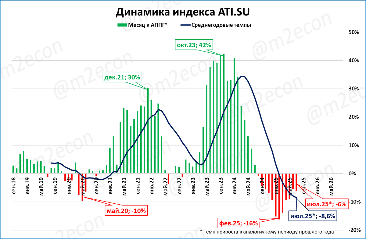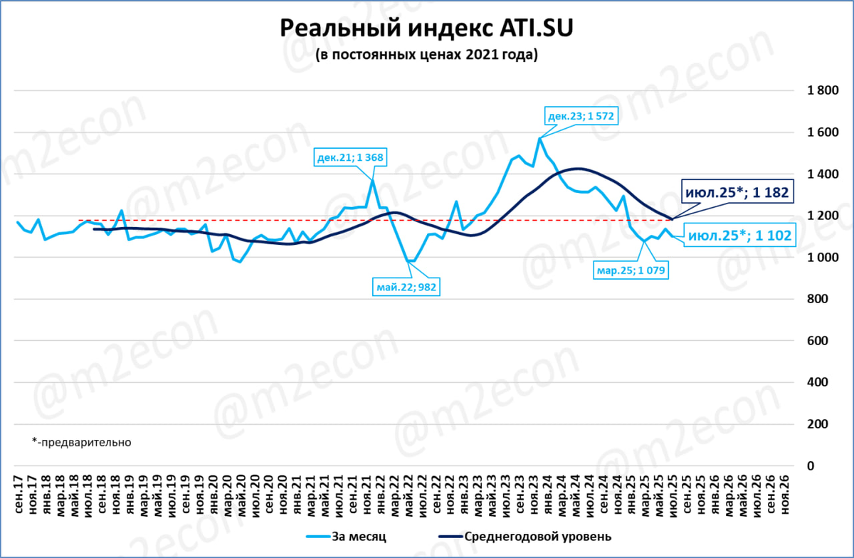В реальном выражении индекс (после взлёта в 2023 году) уже давно вернулся на уровень, характерный для 2017-2020 годов.