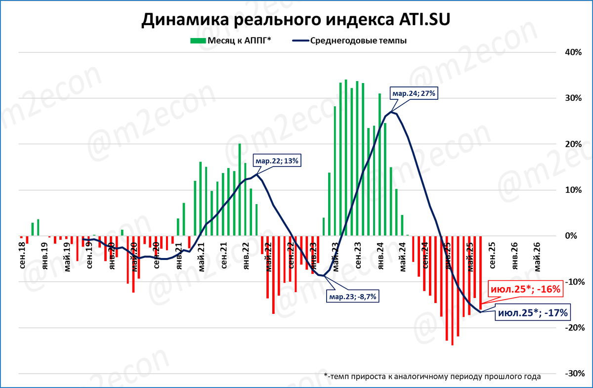 Сейчас реальный индекс на 16% ниже, чем год назад.