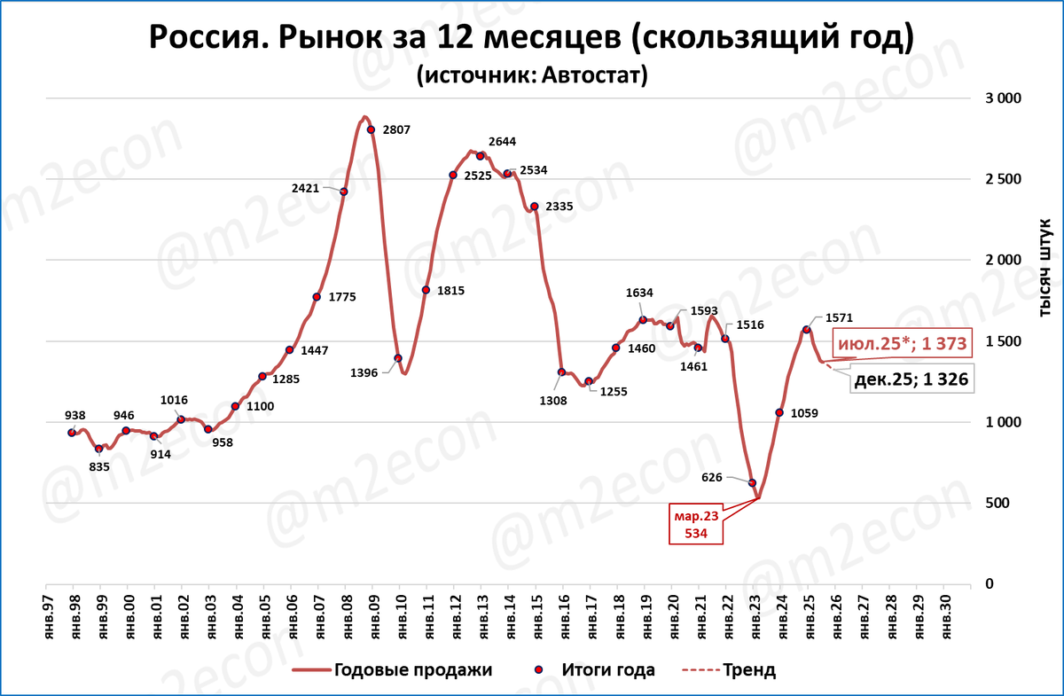 Продажи за последние 12 месяцев (скользящий год) по итогам июля составят около 1,373 млн.