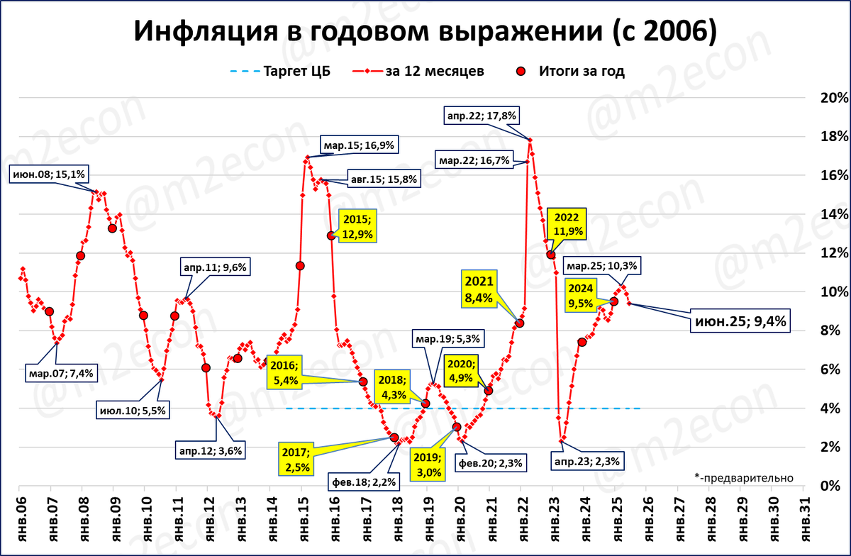 В пятницу 11 июля Росстат сообщил, что инфляция по итогам июня составила 9,4% годовых.