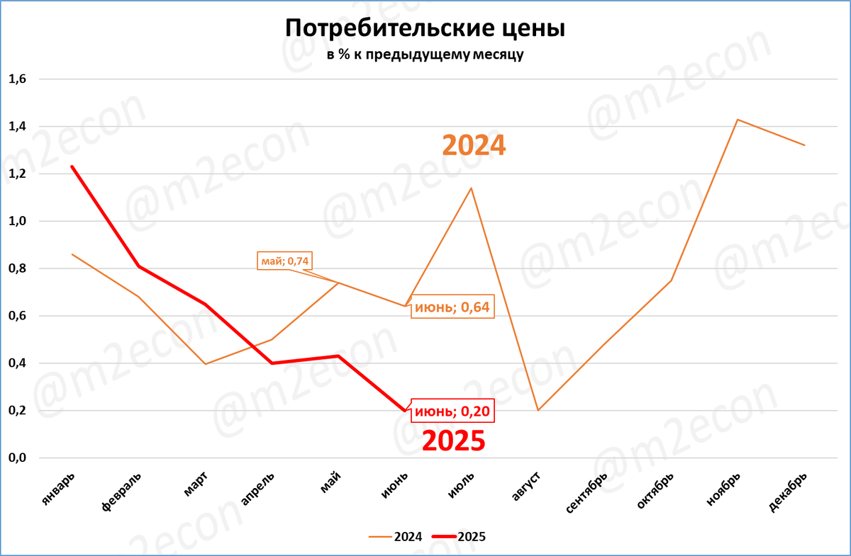 Рост цен за июнь составил 0,20% (0,64% в июне прошлого года).