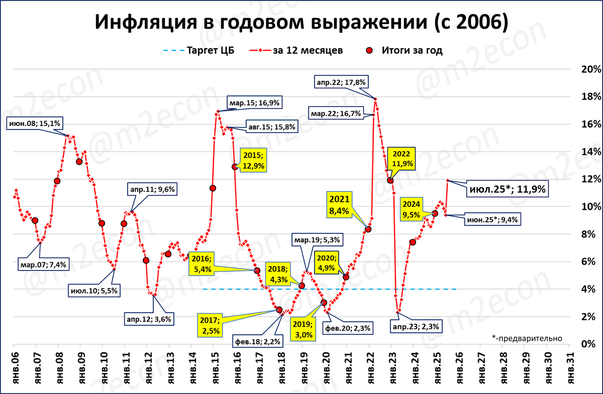 Инфляция в июле (не) может вырасти до 11,9%