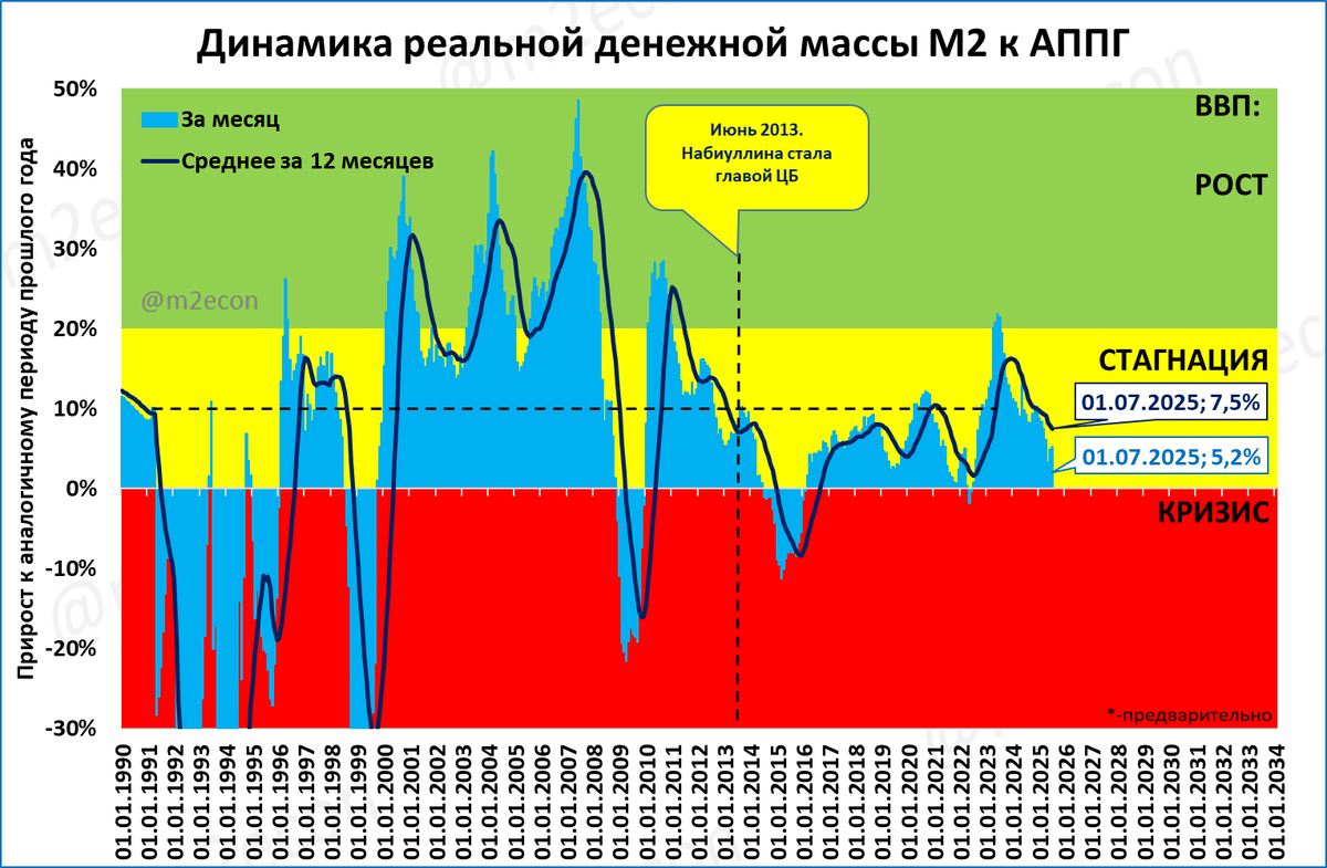 На нашем традиционном "денежном светофоре" рост реальной денежной массы выглядит так.