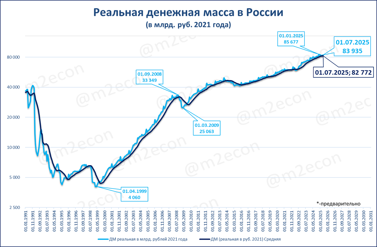 Ниже реальная денежная масса в постоянных ценах 2021 года.