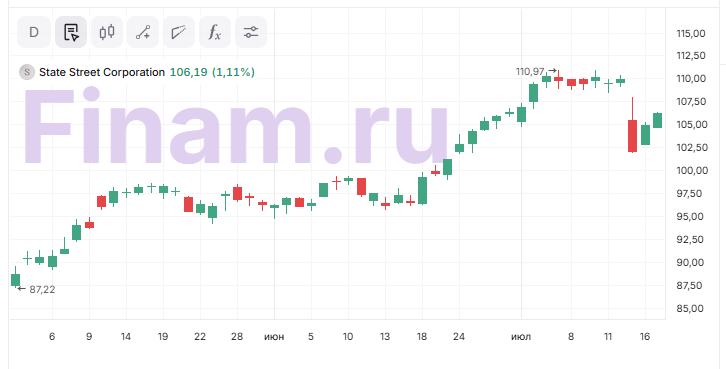 Выручка State Street во II квартале 2025 г. увеличилась на 8,1% г/г, до $3,45 млрд, и оказалась несколько лучше консенсус-прогноза на уровне $3,38 млрд. В том числе комиссионный доход вырос на 10,7%, до $2,72 млрд, чему поспособствовало повышение средств на депозитарном обслуживании на 10,6% г/г, до $49 трлн, активов под управлением — на 17,1%, до $5,1 трлн. Между тем чистый процентный доход понизился на 0,8%, до $729 млн, из-за некоторого ослабления чистой процентной маржи. Операционные расходы поднялись на 11,4%, до $2,5 млрд, в основном в связи с увеличением стимулирующих компенсаций сотрудникам и ростом инвестиций в технологии и развитие бизнеса. Как результат, чистая прибыль сократилась на 2,5%, до $693 млн, или $2,17 на акцию. Однако скорр. EPS, не учитывающий ряд разовых статей доходов/расходов, вырос на 17,7%, до $2,53, и существенно, на 17 центов, превзошел среднюю оценку аналитиков Уолл-стрит.