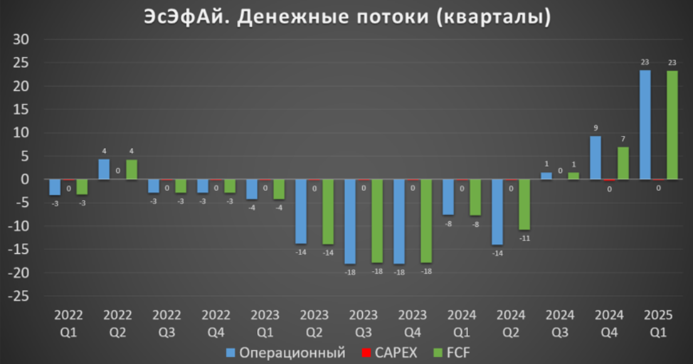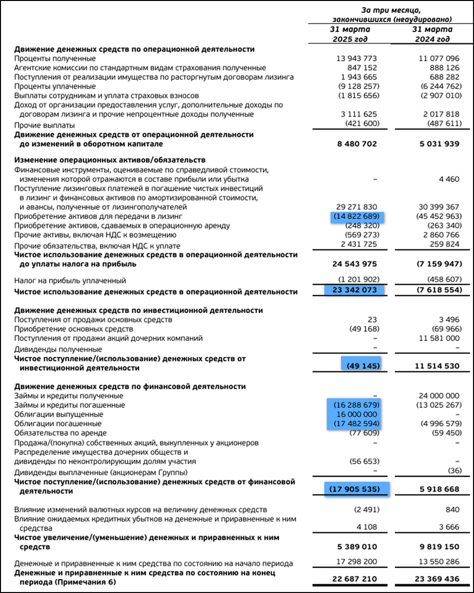Денежные потоки за 1Q 2025 также в основном копируют отчетность Европлана: