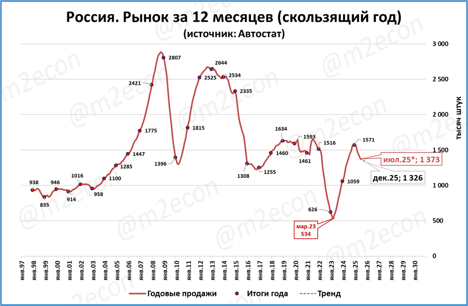 При этом текущий тренд «ведёт» к итогам года в размере выше 1,3 млн.