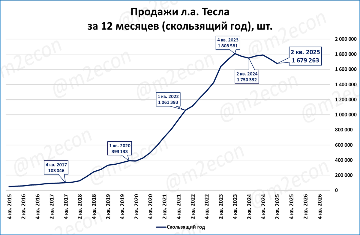Но после 2023 года продажи Теслы тоже стагнируют.