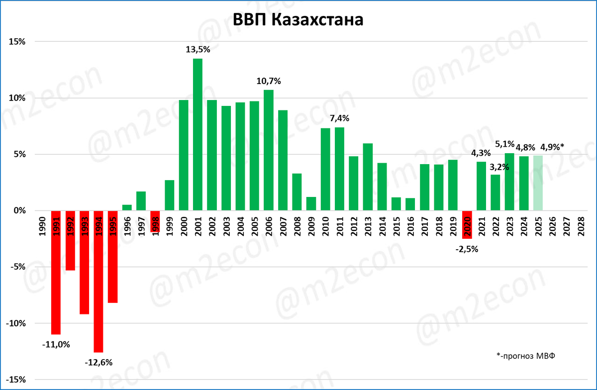 По итогам 2025 года МВФ ожидает рост ВВП Казахстана на 4,9%.