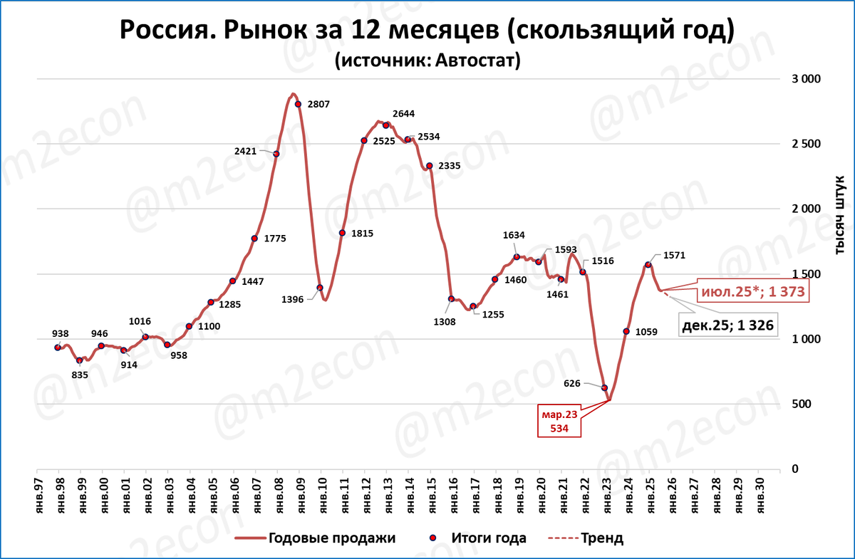При этом текущий тренд «ведёт» к итогам года в размере выше 1,3 млн.