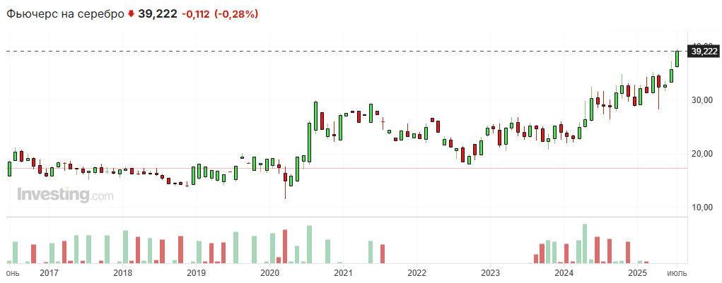 Главную роль в ралли серебра сыграл рост геополитических рисков. Когда президент США Дональд Трамп пригрозил ввести 30%-ные пошлины на импорт из Мексики и Европейского союза, рынки сразу отреагировали.