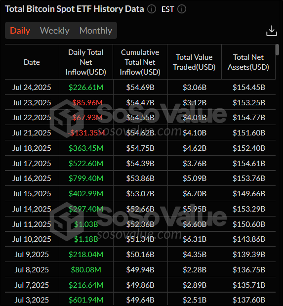Отрицательную динамику на неделе продемонстрировали и спотовые биржевые фонды на биткоин. После двенадцати подряд торговых сессий притока денежных средств былизафиксированы отток. На протяжении трех дней подряд, с 21 по 23 июля, инвесторы выводили деньги из биржевых фондов. Правда, общая сумма за неделю оказалась относительно скромной — $58,64 млн.