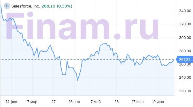 Salesforce повысила свой годовой прогноз. Теперь компания ожидает скорректированную прибыль на акцию в диапазоне от $11,27 до $11,33, а выручку — в интервале $41–41,3 млрд, что подразумевает ее рост на 8–9%. Консенсус-прогноз предполагал чистую прибыль $11,16 на акцию и выручку $40,82 млрд.