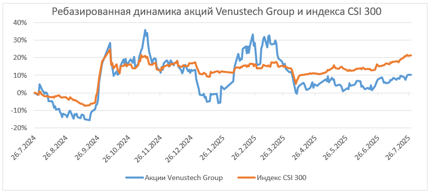 За последние 12 месяцев акции компании демонстрировали динамику хуже, чем китайский индекс CSI 300. За этот период акции выросли на 10%, а индекс — на 21%.
