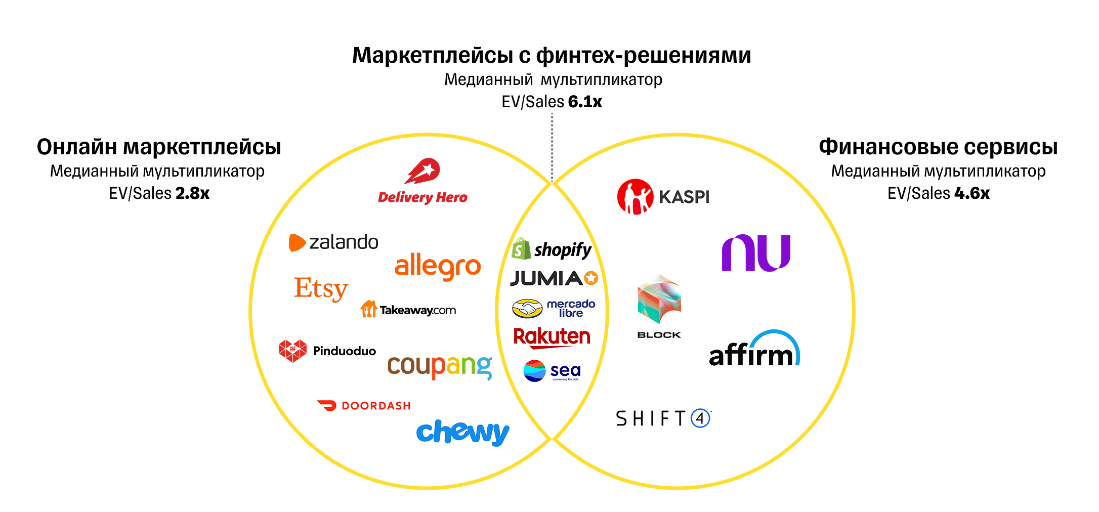 Маркетплейсы, которые встраивают финансовые сервисы торгуются по более высоким мультипликаторам.