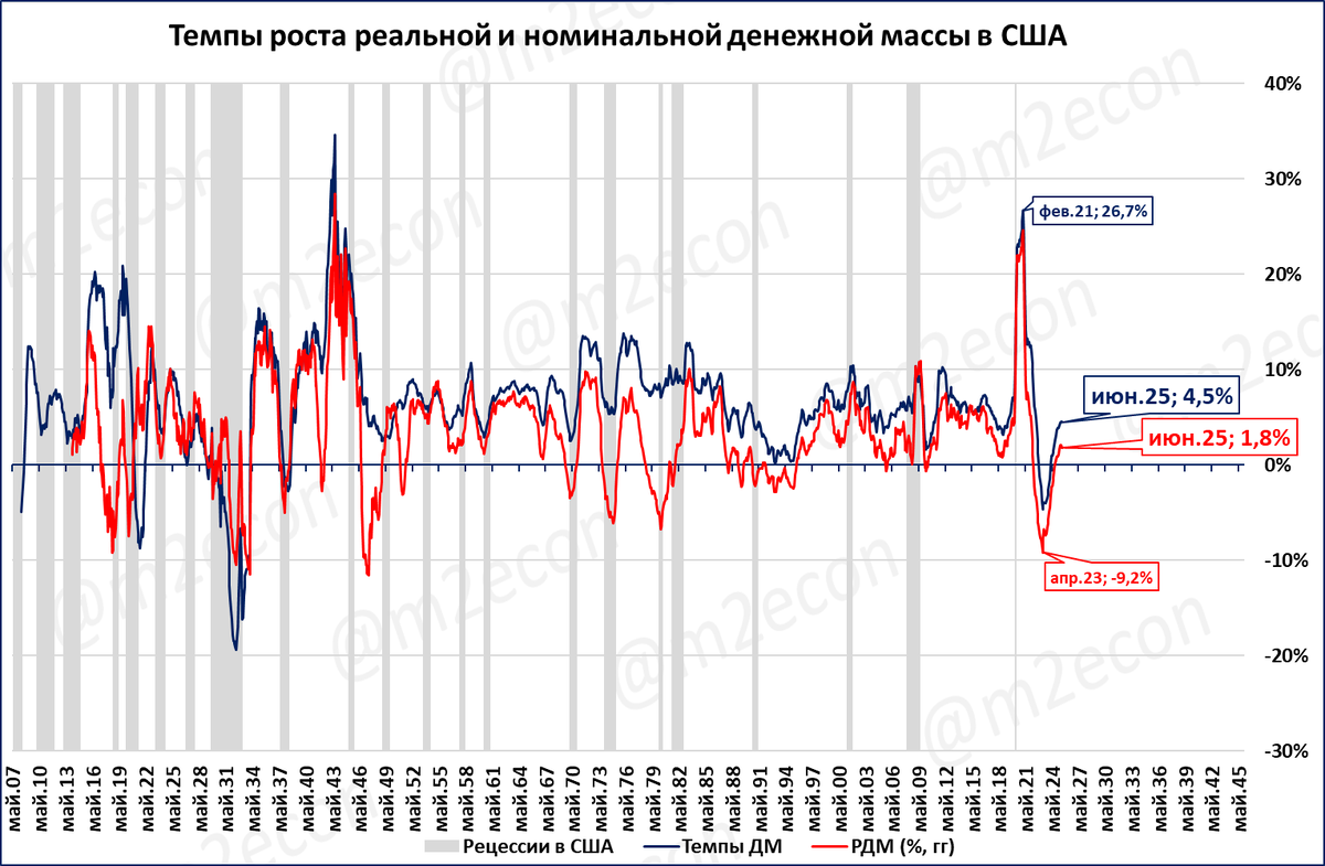 Напомним, что, в отличие от ЦБ РФ, центральный банк Соединённых Штатов публикует статистику не только номинальной, но и реальной денежной массы.