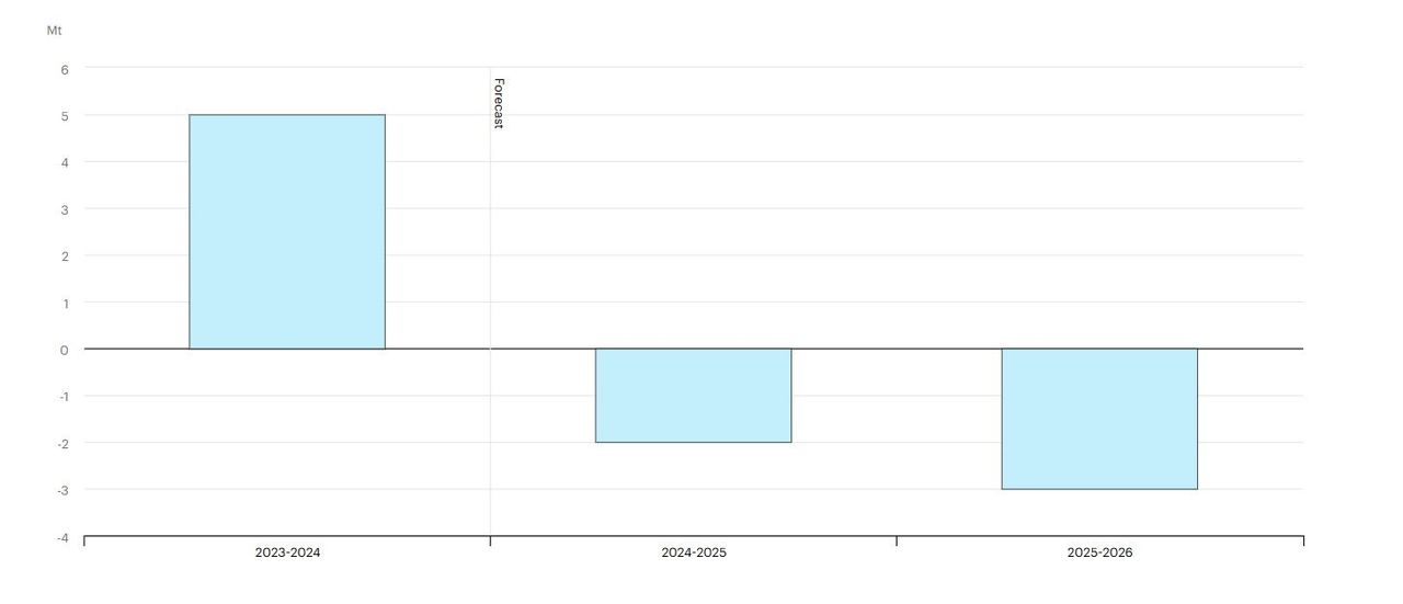 В прошлом 2024 г., по мнению Агентства, предложение составило 9,15 млрд. т. Соответственно, если руководствоваться предварительным прогнозом по спросу, то рынок в 2024 г. был в профиците приблизительно на 360 млн. т.