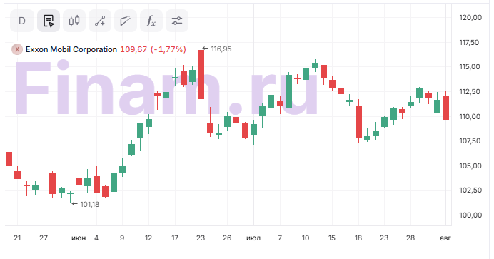 Компания представила нейтральную отчетность по итогам второго квартала. Выручка нефтяника сократилась на 12,4% г/г, до $81,5 млрд, а скорректированная чистая прибыль на акцию — на 23,4% г/г, до $1,64. Отметим, что скорр. EPS оказался немного выше рыночных ожиданий, но все равно был минимальным с 2021 года.