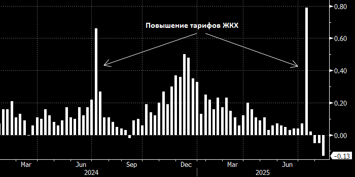 На неделе до 4 августа потребительская инфляция в России составила -0,13% н/н, сообщает Росстат. Это самое низкое значение с сентября 2022 года.