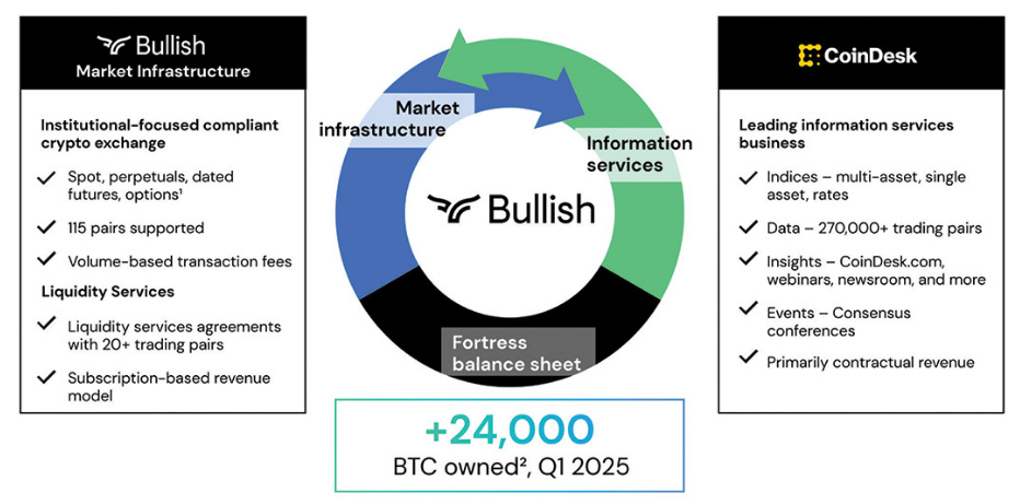 Кросс-продажи: продукты CoinDesk Indices торгуются на Bullish Exchange, аналитика и данные CoinDesk Data усиливают оба направления.