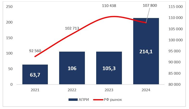 В 2024 году ПАО «АПРИ» вошло в топ-25 крупнейших застройщиков России по объему введенного жилья — 202 243 м². В Челябинской области АПРИ — безусловный лидер, с долей рынка 29,78%. Всего в портфеле компании 14 проектов, 2 из которых завершены до начала 2024 года, 12 находятся в текущей стадии реализации. С 2014 года в эксплуатацию введено 888 093 м2 жилых и коммерческих помещений.