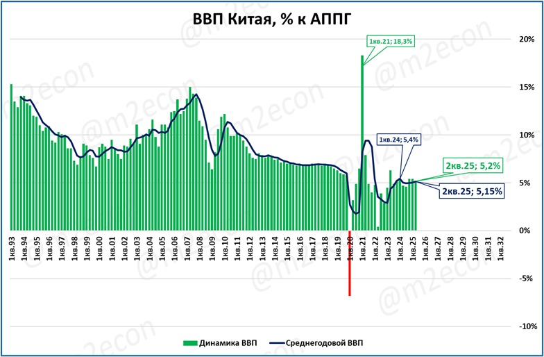 Напомним, что ВВП Китая во 2 квартале вырос на 5,2%.