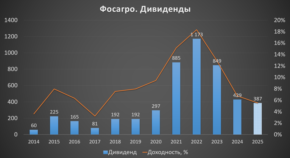 24.06.25 акционеры ФосАгро на внеочередном собрании не приняли решение о выплате дивидендов по итогам I квартала, хотя Совет Директоров рекомендовал выбрать из двух вариантов: 144₽ и 201₽ на акцию.