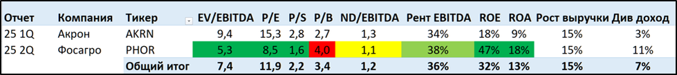 EV/EBITDA = 5,3; P/E скорр = 7,5;