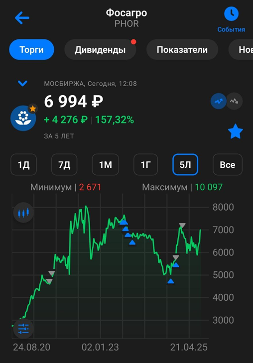 В начале текущего года я на локальных максимумах закрыл с прибылью позицию по ФосАгро, плюс получал неплохие дивиденды