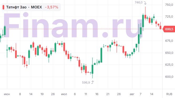 Сегодня стало известно, что СД "Татнефти" рекомендовал выплатить 14,35 руб. на акцию в качестве дивидендов по итогам первого полугодия. Доходность выплаты может составить лишь 2,0% на обыкновенную и 2,1% на привилегированную акцию.