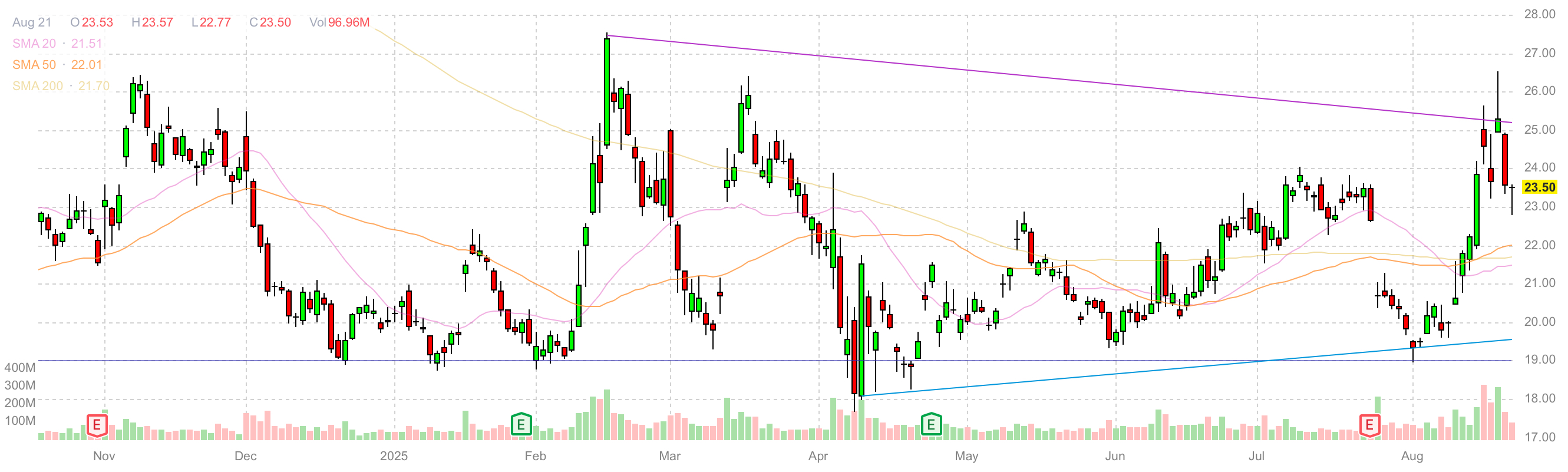 Мы понижаем взгляд на акции Intel до «Негативного» и сохраняем целевую цену $20 после отчетности за II квартал, слабых ориентиров менеджмента и роста котировок на фоне политической поддержки. Intel теряет долю на основных рынках, выручка снижается, маржинальность близка к минимальным уровням за последние годы. Свободный денежный поток останется отрицательным еще как минимум два года. Однако в фокусе нового менеджмента — стратегическая трансформация. Возможна монетизация неключевых активов: компания уже продала 7% в Mobileye во II квартале. А власти США намерены вернуть в страну выпуск чипов на базе активов Intel: вслед за встречей президента Трампа в Белом доме с главой Intel появились новости о желании государства приобрести долю в Intel.