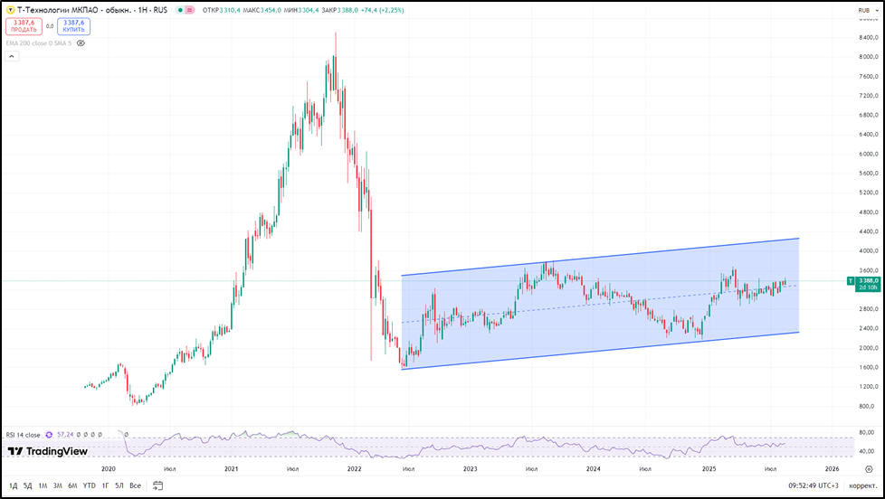 В мае 2025 года я заново купил акций «Т-технологий». На данный момент они занимают около 1% от моего портфеля акций. Позиция плюсует на 15%, не считая полученных дивидендов.