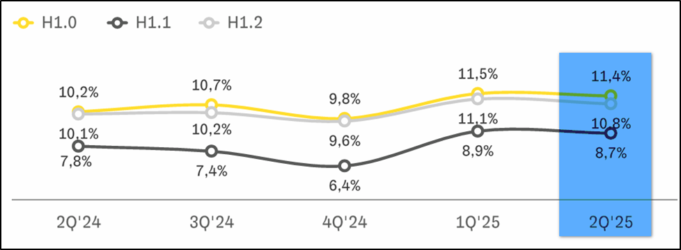 Н1.1 (базовый) 8,7% (минимально допустимое значение — 4,5%),