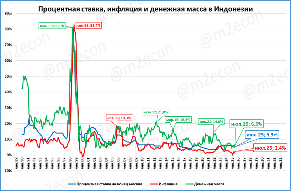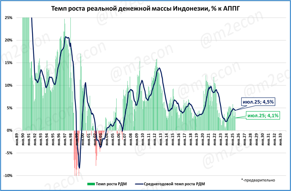 В Индонезии рост денежной массы составил 6,5%, а с учетом инфляции рост РДМ за июль составил 4,1%. Предварительно, рост ВВП составил 5,1%.