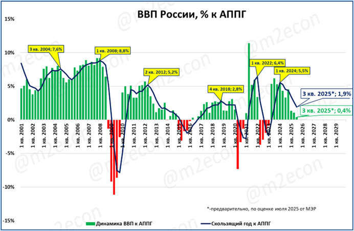 Это первый месяц третьего квартала. За два оставшихся месяца квартала, в августе и сентябре, динамика может измениться. Но если предположить, что весь третий квартал динамика сохранится на уровне 0,4%, то картина будет выглядеть удручающе.