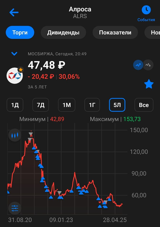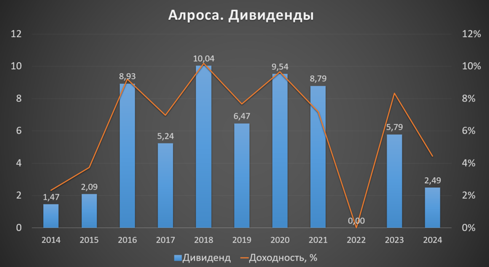 За 1П 2025 компания ориентировочно заработала 2,75₽ (5,5% доходности к текущей цене). Но вполне вероятно, что из-за текущей ситуации в отрасли и компании, и эти дивиденды отменят. Правда, с другой стороны, бюджет Республики Саха существенно зависит от них.