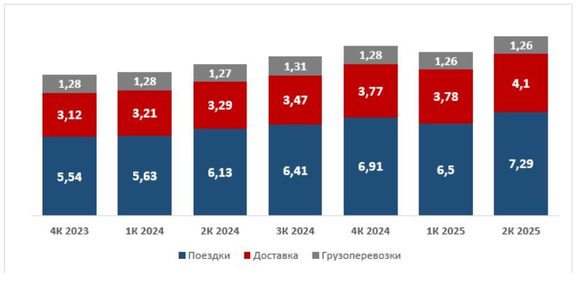 Доставка — за 2К 2025 выручка составила $4,1 млрд (+25% г/г);