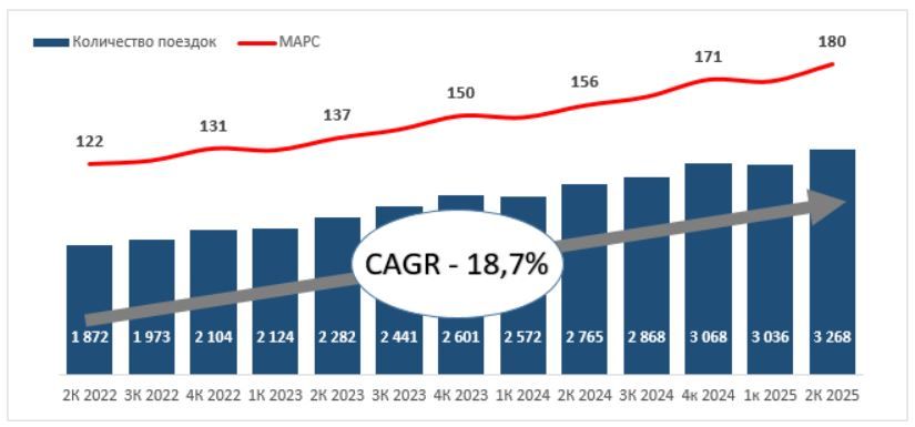 Более половины выручки приходится на сегмент «Поездки» (58% по итогам 2К 2025).