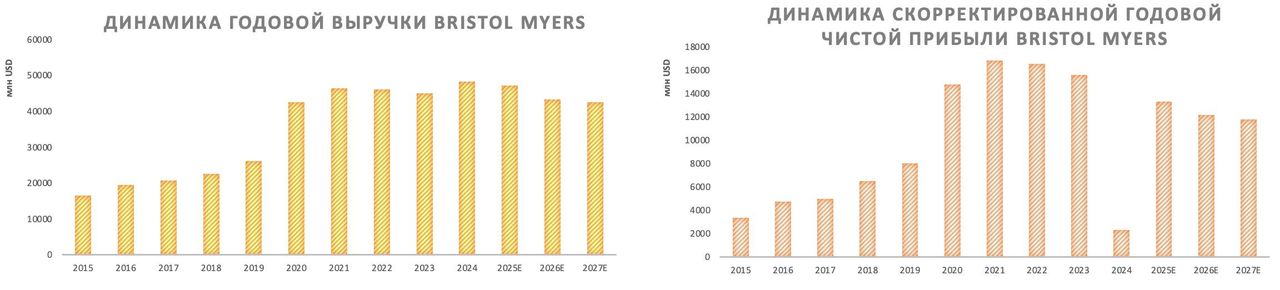 Годовая выручка Bristol Myers в 2024 году увеличилась на 7%, тогда как скорректированная чистая прибыль сократилась до символической величины в силу издержек по приобретению Karuna Therapeutics, RayzeBio и Mirati Therapeutics.