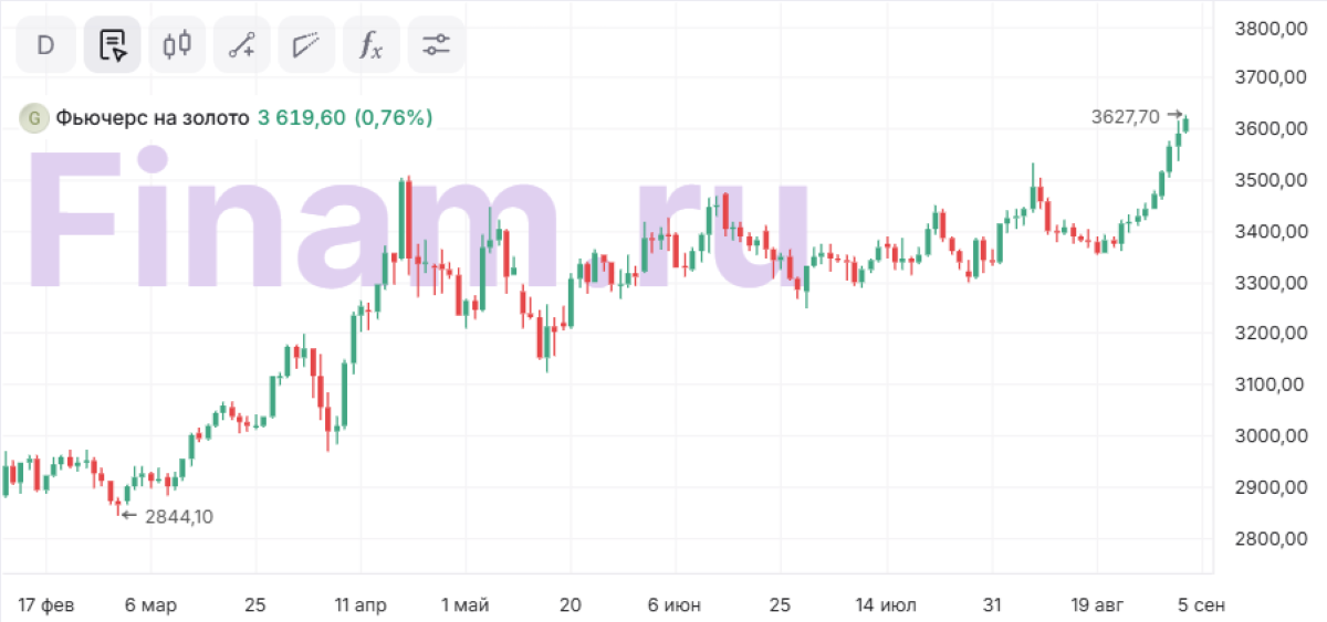 Сентябрь на рынке драгоценных металлов начался бодро. Цены на золото обновили рекордный уровень, превысив $3600 за унцию. Всего за три дня этого месяца актив подорожал уже более чем на 2% после роста на 5,2% в августе.