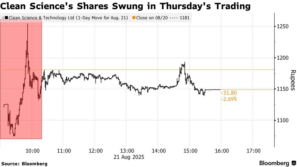 В четверг акции Clean Science резко выросли в цене. Затем они упали на 9,3% до 1070,50 рупий, а потом за несколько минут подскочили до 1256,80 рупий, что составило рост на 17%, после чего к концу дня упали на 2,7%.