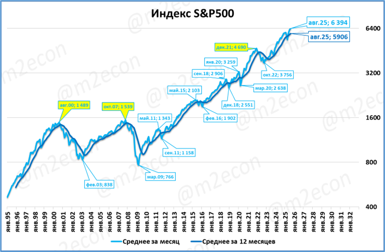 В августе американский фондовый индекс S&P 500 установил очередной исторический рекорд, 6 394 пункта.