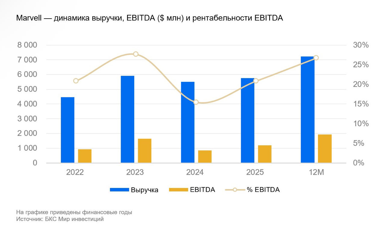 - Marvell — один из основных бенефициаров инвестиций технологических гигантов в ИИ