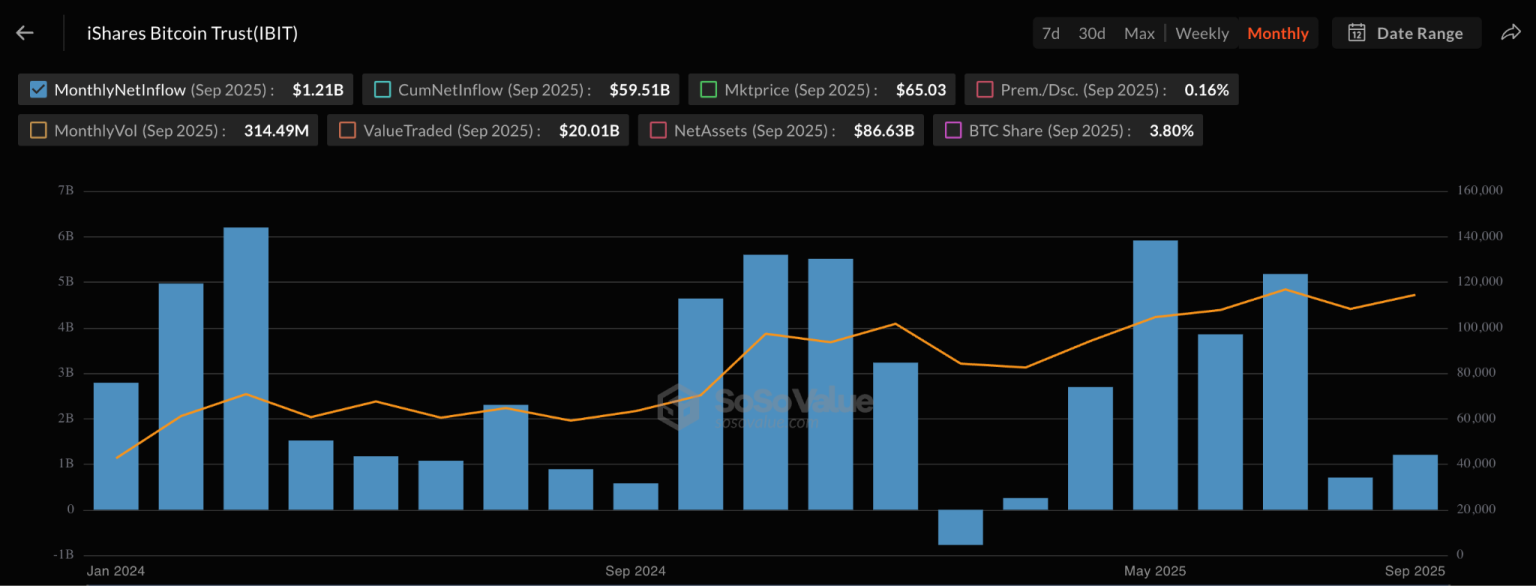 Месячные притоки по iShares Bitcoin Trust от BlackRock. Источник: SoSoValue.